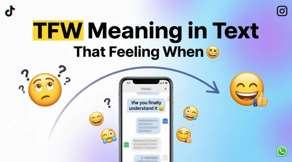 TFW in text means “that feeling when.” People use it to describe a relatable emotion or moment, often in a funny or dramatic way. You’ll see it on TikTok, Snapchat, Instagram, and in everyday chats. Many search it because it looks confusing at first glance.